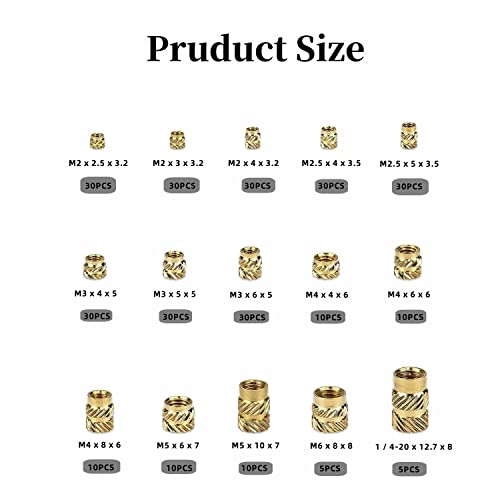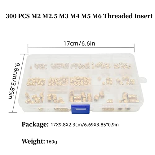 300 Stück Gewindeeinsatz M2 M2.5 M3 M4 M5 M6 Einpressmuttern Messing Gewindebuchsen Innengewinde Rändelmuttern mit Sortierbox für Kunststoffteilen in Durch Erwärmung oder Ultraschall in 3D Drucker