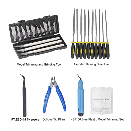 Paket beinhaltet: Hat verschiedene Werkzeuge, denn 13 Phase Trimm- und Schleifwerkzeug, 10 Phase Feile, 1 Phase Pinzette, 1 Phase Pfeiler usw.