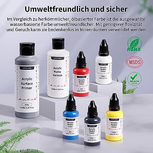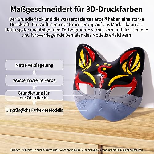 【Maßgeschneidert für die Einfärbung mit 3D-Druckern】①Die wasserbasierte Grundierung und Farbe haben eine starke Deckkraft. Es verbessert die Haftung nachfolgender Farbpigmente und erleichtert so ein schnelles und farbverbindliches Bemalen des Modells.②Im Abmachung zu herkömmlichen Acrylpigmenten weist es eine bessere Fließfähigkeit auf, wodurch es für den Anwender einfacher ist, Farben zu mischen und gleichmäßige Beschichtungen zu bilden.③Wirkt matt nach dem Abreiben.