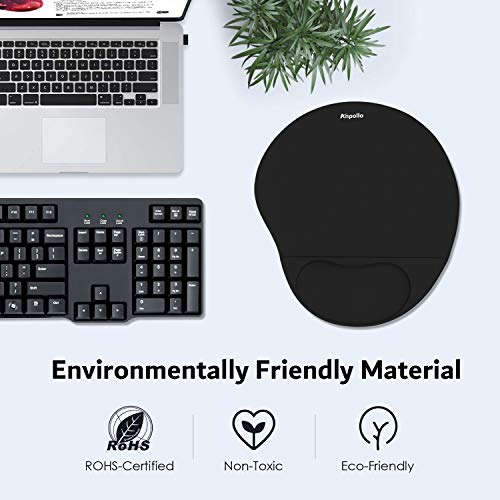 Anpollo Ergonomisches Gel-Mauspad, geeignet für Computer und Laptops, Handballenauflage der Maus gegen Sehnenprobleme, Schwarz